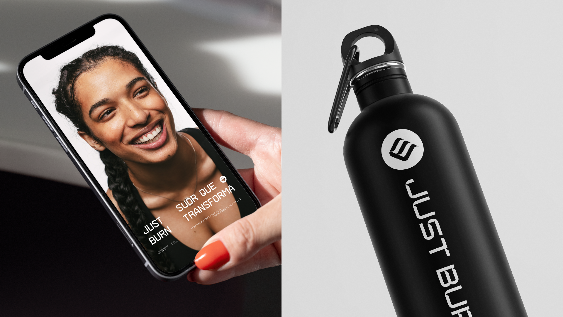A paleta de cores é dominada por um laranja vibrante, simbolizando a energia e a paixão da marca. O logo, uma chama estilizada, não serve apenas como símbolo principal, mas também empresta suas curvas fluidas ao design gráfico, com grafismos que permeiam toda a identidade visual. Na tipografia, a rebeldia é gritante. Utilizamos uma fonte principal em all caps para expressar força e uma fonte secundária que imita a escrita manual, adicionando um toque humano. O universo visual e verbal da marca foram a inspiração perfeita para o ambiente dos clubes e também para a primeira coleção de roupas para os "burners", membros da comunidade que vivem e respiram os valores da marca. Em apenas um ano, a Just Burn já transformou a rotina de milhares de alunos, que entenderam que a melhor motivação é estar sempre em movimento.