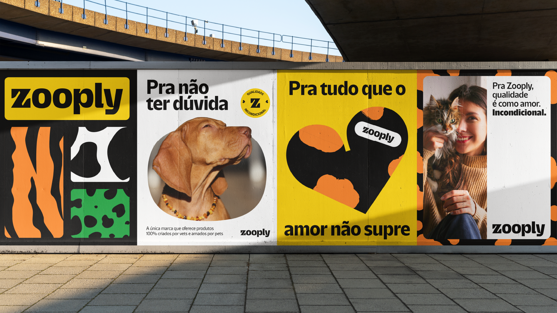 Com um tom de voz próximo e acolhedor, Zooply transforma o ato de cuidar dos pets em uma experiência leve, sem complicações, colocando o bem-estar sempre em primeiro lugar. A marca cria uma conexão emocional com tutores de pets, refletindo seu compromisso com aqueles que amam incondicionalmente sem pedir nada em troca.