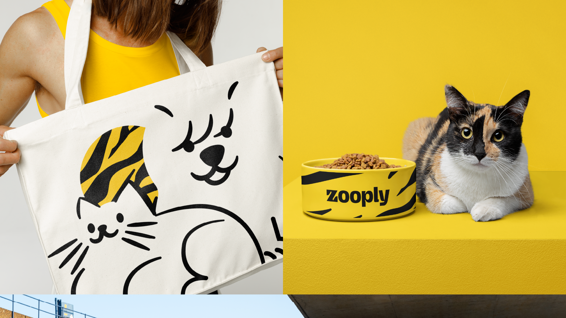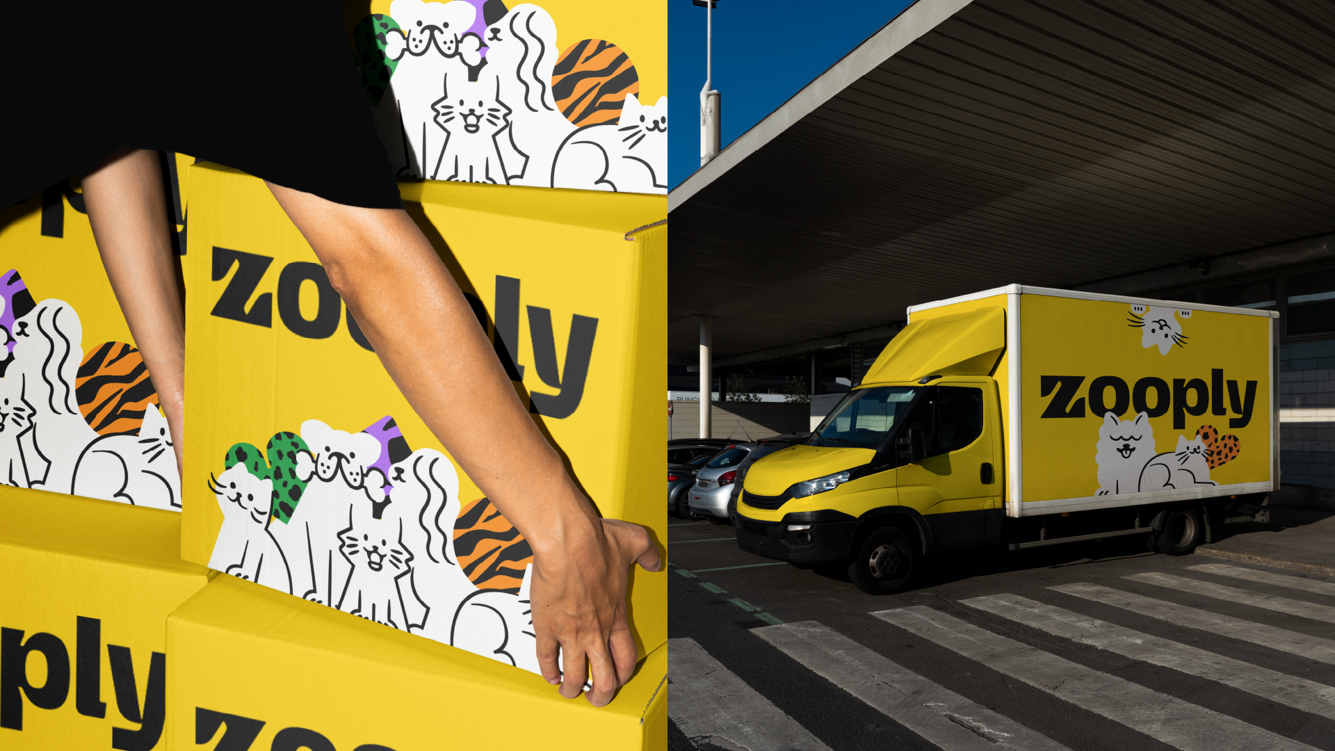 O universo visual da marca traz uma combinação de cores vibrantes, tipografia divertida e ilustrações minimalistas que representam a diversidade de animais atendidos pela linha de produtos da Zooply. O amarelo foi escolhido como cor principal, garantindo destaque nas prateleiras e criando uma identidade fácil de reconhecer.